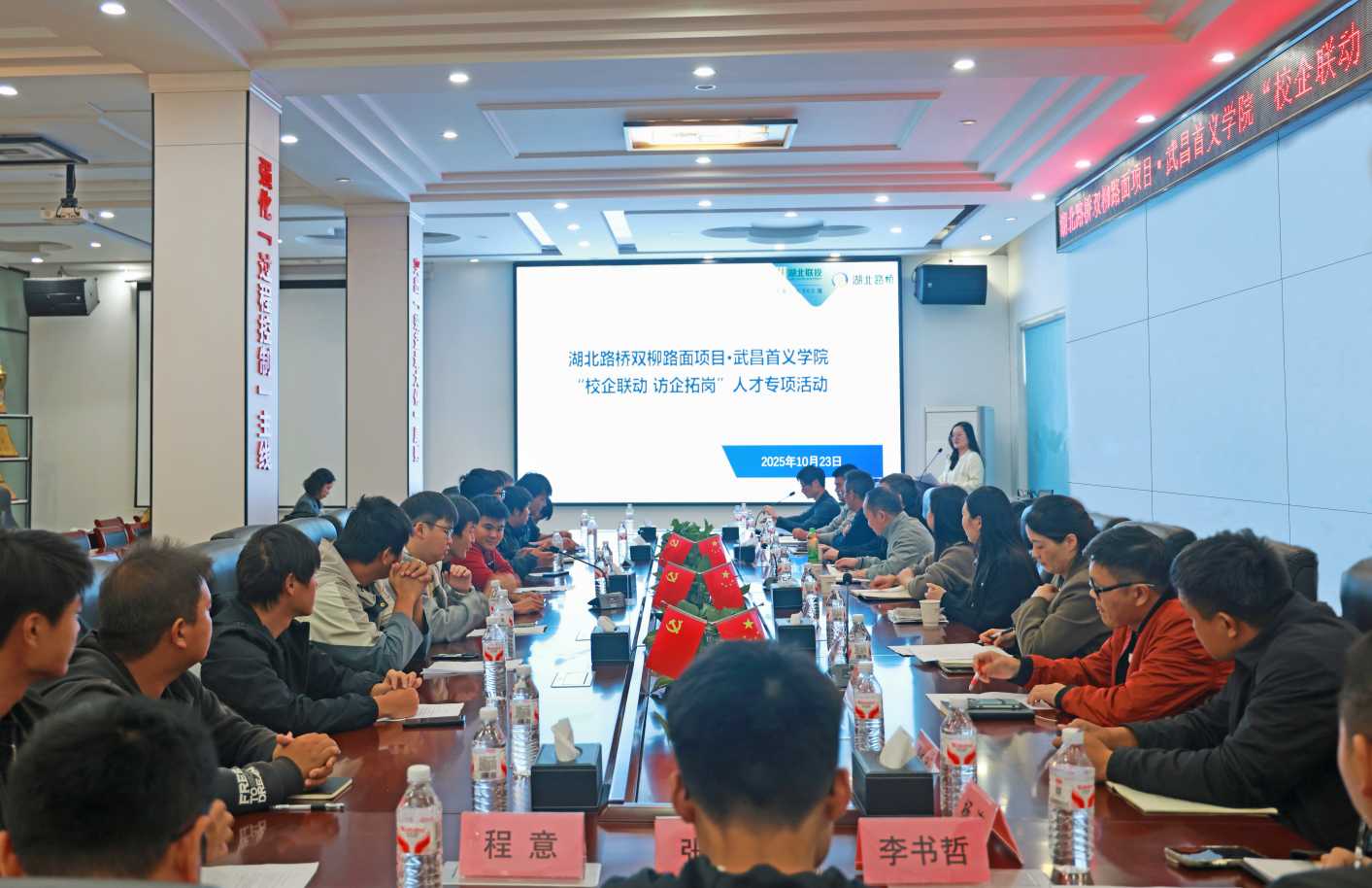 為深化產(chǎn)教融合、推動校企協(xié)同育人,10月23日下午,湖北路橋雙柳長江大橋路面項目部聯(lián)合武昌首義學(xué)院開展“校企聯(lián)動 訪企拓崗”人才專項活動,與武昌首義學(xué)院校企合作處處長、教務(wù)處副處長周自倫等座談交流。