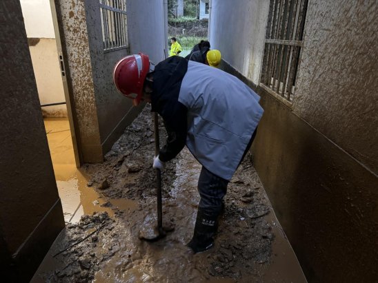 4月以來,安徽省休寧縣氣象臺發(fā)布暴雨紅色預警信號,休寧縣迎來多輪強降雨。湖北路橋德上高速皖贛界段01標六工區(qū)因地勢低洼,部分施工路段出現(xiàn)嚴重積水。項目部附近五城鎮(zhèn)、商山鎮(zhèn)等地降水量驟增,多處出現(xiàn)山體滑坡和泥石流災害,道路被淤泥掩埋寸步難行,大量淤泥涌入居民家中,嚴重威脅當?shù)鼐用裆敭a(chǎn)安全。面對多輪惡劣天氣,湖北路橋德上高速皖贛界段01標項目部迅速啟動抗洪防汛應急預案,多措并舉,全力筑牢抗洪防汛“安全堤壩”。